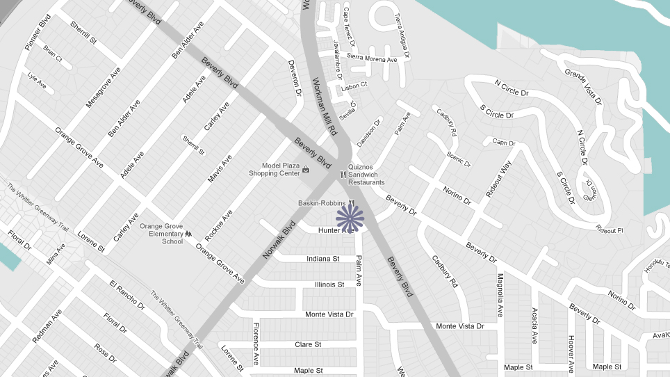 The Beverly Gardens show room is located at 10846 Beverly Boulevard suite C, Whittier, California, 90601. Click here or on the map for directions.